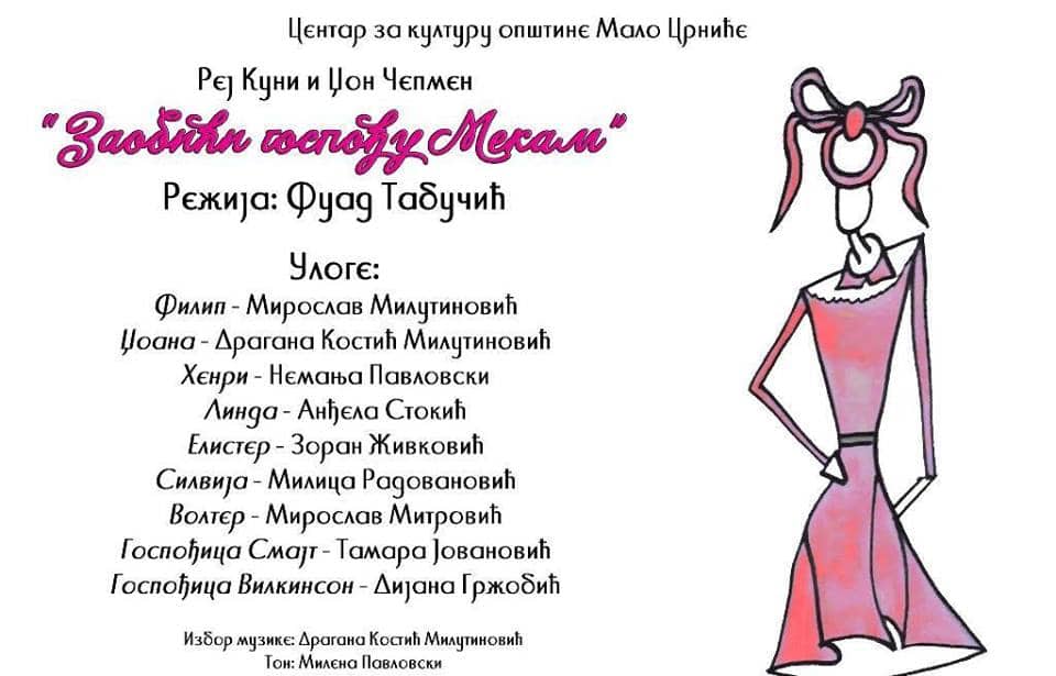 Na sceni Kulturnog centra, u utorak 6. juna, sa početkom u 20.30 sati, glumci opštinskog amaterskog pozorišta „Branislav Nušić“ Malo Crniće izvešće predstavu „ZAOBIĆI GOSPOĐU MEKAM“, po tekstu Rej Kunija i Džon Češmena , u režiji Fuada Tabučića.